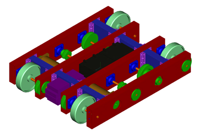 While the model shown top left may not be the most realistic nor the prettiest, it is the model by which all of the CNC milling was performed. I chose contrasting colors because I was not presenting the model to anyone at the time, and I needed to distinguish all of the components from each other. Otherwise, everything would be some variation of grey aluminum as shown on the main page. All of the images for the robot were created before I discovered the rendering features of Pro/ENGINEER. These images are essentially high resolution screen shots. Most images have been heavily doctored in Photoshop. For example, before I revised the CAD images to look more realistic, I took the top left image and played with the colors until it looked nearly identical to the images on the main page. While I did not utilize the advanced rendering features of Pro/ENGINEER, I did change the lighting and perspective options available. The CAD image on the main robot page matches the perspective and lighting in the adjacent photograph. More advanced CAD renderings are shown for other more recent projects such as the Kitchen Krusher I made with a group for a class project. |